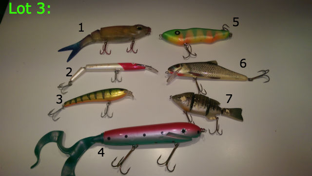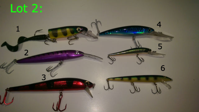 Here are a few lure lots I'm looking to part with, Lots of Rapala Cranks and a few random other baits that I'm not sure the names. One new "Monster Lure" glide bait (never used).