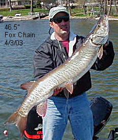 What started out as a half day excurision on the Chain of all places, turned out to be a day of reckoning! Four fish by Ralphie, zero for me. Suckers and Slammer Drop Belly Gliders took a 46.5, 45, 37 and 35!!! Also....we had about 28 follows in addition to the fish boated, glad everyone headed up to Wisconsin for the opener!