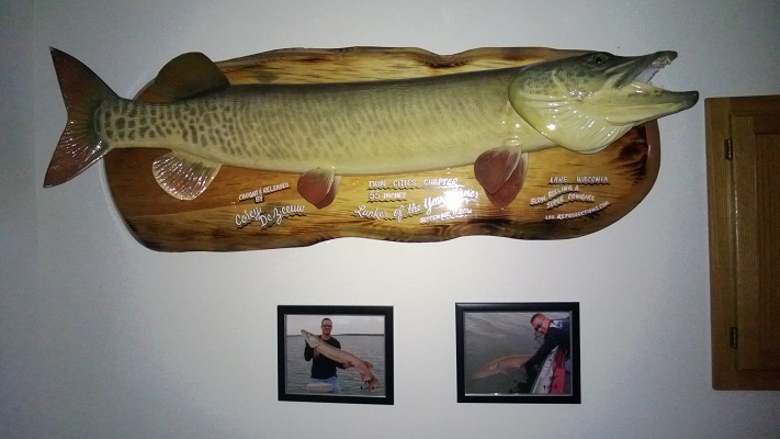 Posts: 228 Location: Downers Grove, IL | I have a great mount from Lax of my PB from Eagle Lake done by Lax. I have it mounted on the butternut plaque (is that what the wood is?) but I wish I just had a mount without the plaque. It feels kind of silly displaying it in my own den saying "Caught by..." and all the other stuff. IF it's in my home, I think I can tell anyone who's interested who and where it was caught and how big it was. I ordered a replica of a 47" Tiger at the Milwaukee show that I caught last year. I ordered it without the plaque and Rick Lax said he'd send me a bracket to use after I remove the plaque on my Eagle fish. It truly is personal preference, but since you asked, that's my $.02. | ||