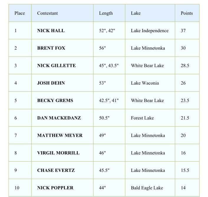 Subject: Re: Minnesota Muskie Metro Tournament Results