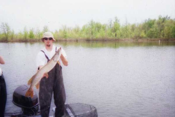 Posts: 202 Location: Angola, IN | With all three Hulberts in the boat at the same time this weekend, it was a blast. We had lots of action. A had a nice mid forty incher hot after a reefer hawg, but she didn't eat it. Since I'm the oldest, I had to show them how it was done. I caught a really beat up male (36") and Mike caught a nice Pike....the new Pike Master. Tom had some up, but could only "quick release" a small 2 footer. Attachments ---------------- 36.JPG (34KB - 227 downloads) Bob Pike 5-12-03.JPG (28KB - 204 downloads) | ||