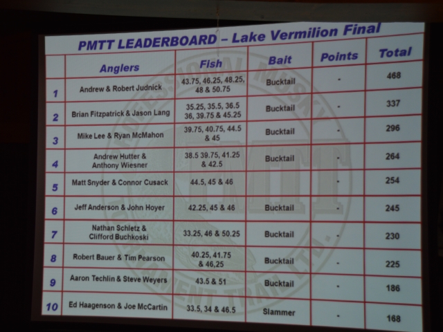 Posts: 32959 Location: Rhinelander, Wisconsin | Andrew & Robert Judnick Take 1st Place; PMTT Lake Vermilion Brian Fitzpatrick and Jason Long Take 2nd Place; PMTT Lake Vermilion Mike Lee & Ryan McMahon Take 3rd Place at The Lake Vermilion PMTT Event | ||
