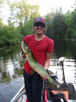 About 10 minutes later, along the same spot, they hoisted the Pike for a picture with the Husky Jerk hanging from the other side of his mouth. They got him on a Sand Cat.