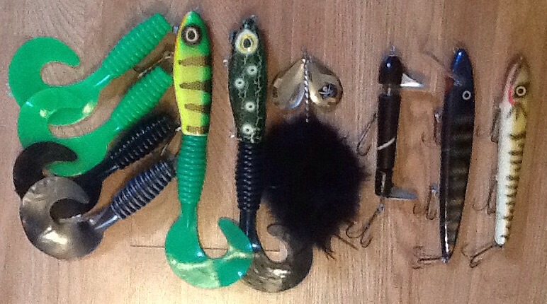 10" older hughes river smallmouth color, has "sk" painted on tail. $45