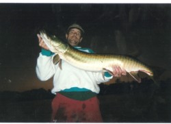 Posts: 827 Location: Minneapolis,Minnesota | The first Musky I ever caught was when I was 15 and I as fishing from my uncle's dock. Being from a walleye fishing family I had no muskie gear but wanted to catch a muskie in this lake that was stocked with tigers. I was casting a home made bait (I took a mister twister sassy shad and added a beetle spin blade to it) for about 15 minutes when my dad came down to the dock and asked "what are you trying to catch with that?" As I reeled the bait up I turned to answer him and heard a splash and felt weight thrashing on the end of my line. A young tiger literally jump out of the water and grabbed the bait that was dangling a few inches over the water hooking himself. As I layed the fish on the dock to get the hook out he flopped and the hook popped out and back in the lake he went. At that moment all I wanted to catch were muskies. | ||