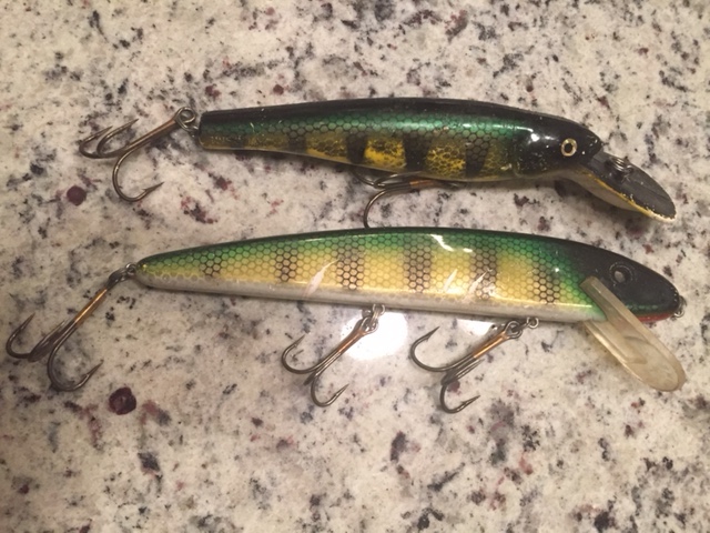 Lot 2: Crankbaits- (Lil Erinie- Perch and a Original 9'' Grandma- Perch, missing both eyes) $25 tyd- SOLD