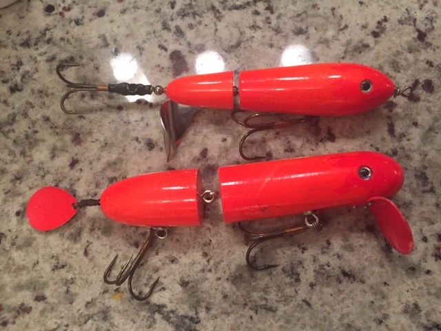 Lot 3: Topwater- Lee Lures Top H20 and Lee Lures Water Chopper (both orange with flames on the heads) $65 tyd- SOLD