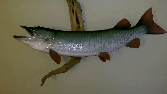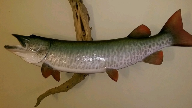 Got my replica 54 inch musky last week from fibertech. Very impressed with the incredible detail and accurate representation of my fish. The eyes seem to glisten from all angles giving the appearance that its eyes are following you. Scars on its cheek from from a previous run in are replicated and the head looks identical in facial structure.