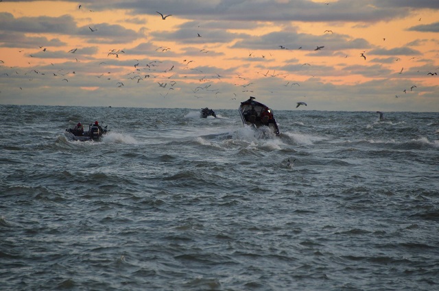 Location: Contrarian Island | I don't know that I would venture out on GB with any kind of wind / waves in an esox mag... it can handle driving in big waves but I think you would be taking water over the bow while casting if you work into the wind... mag is a great rig but a deep v of some sort is going to be safer on BiG water | ||