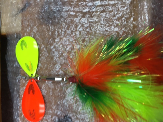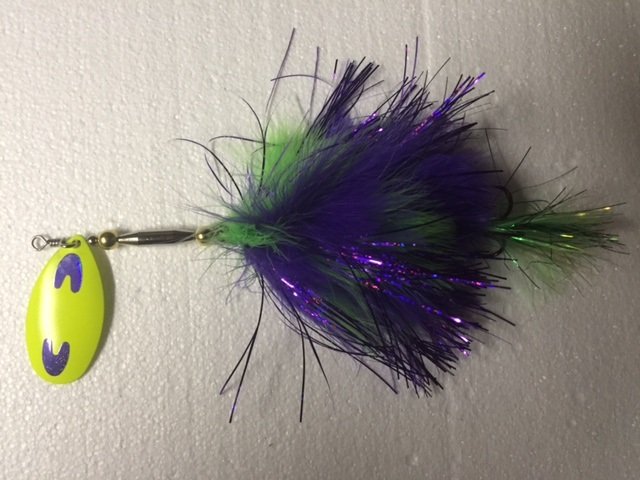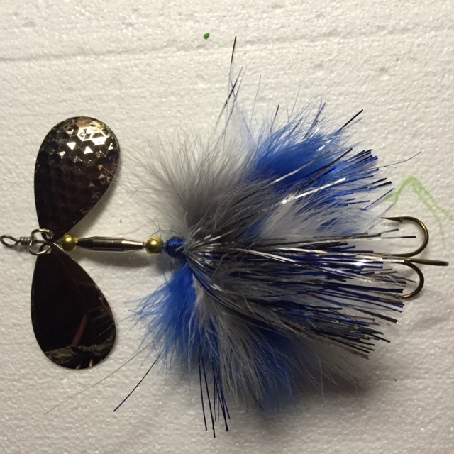 Posts: 50 | These next tails I originally tied up to go along with double #8 fluted blades and run higher up in the water column. I found some nice Indiana blades and used them as a single blade instead. I added extra weight to get them to run deeper and grind along the deeper weed edge. | ||