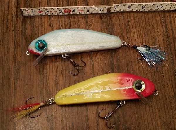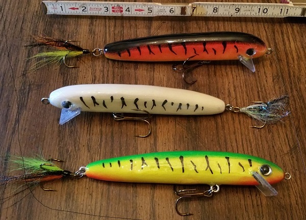 Posts: 2754 Location: Mauston, Wisconsin | Very Nice! I like the teaser tails. Way better than bare rear hook. My good friend "The Beav" a.k.a. Beaver Slivinski ties some wicked teasers for me. I'm just a fumbling fool by comparison when it comes to tying or even lure making. Maybe it has something to do with my essential tremor, I''m very glad he's there for me. Good looking lures! Keep it up.. Have fun! Al | ||