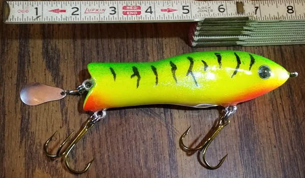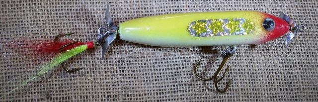 Posts: 44 | Thanks for all of the comments. If there is anything better than catching a muskie it's catching one on a lure you made yourself. The trailer hooks are tied with Kevlar thread and sealed with epoxy. I put them on almost everything including the Glidin Rap shown below. I previously used a heat gun to level the epoxy but now use an old blow dryer I found at a yard sale. It seems to give less concentrated heat. Lots of trial and error in that process - mostly error! I have added some new pictures of topwaters. Attachments ---------------- Image 5.jpg (78KB - 333 downloads) Image 7.jpg (98KB - 331 downloads) Image 6.jpg (103KB - 348 downloads) Image 8.jpg (61KB - 336 downloads) Image 9.jpg (111KB - 322 downloads) | ||