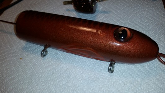 Top coating is the part of lure building thats so close to success and failure. I've had a few that have fallen of the turner, it really sucks. |