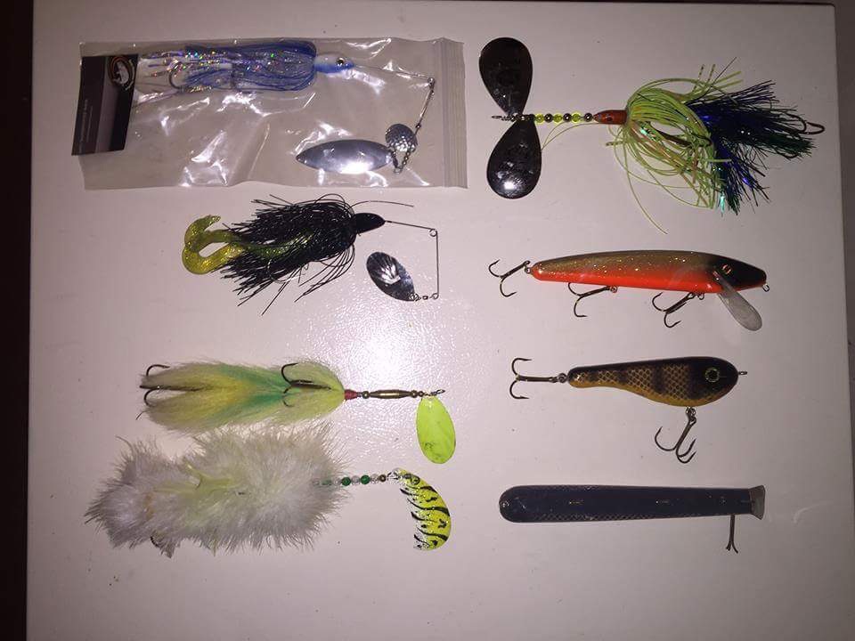 50 shipped. All have been used except the esox custom spinner.