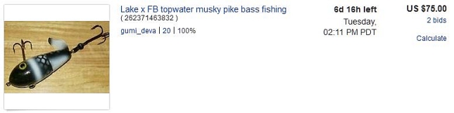 Location: Oswego, IL | I like how the first one even said "seller re-listed this item" Wow what a scam, eBay should caught this trick by now.I bet they bid each others baits up and once someone real doesn't actually bite they cancel their bids and sale. Ebay don't care because they get paid for the listing anyway....Dirty. MNmusky be also aware of the payment scam too.. you send the bait, and they pull back money after you ship, free bait for them to now list. | ||