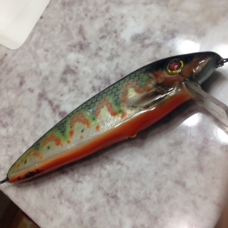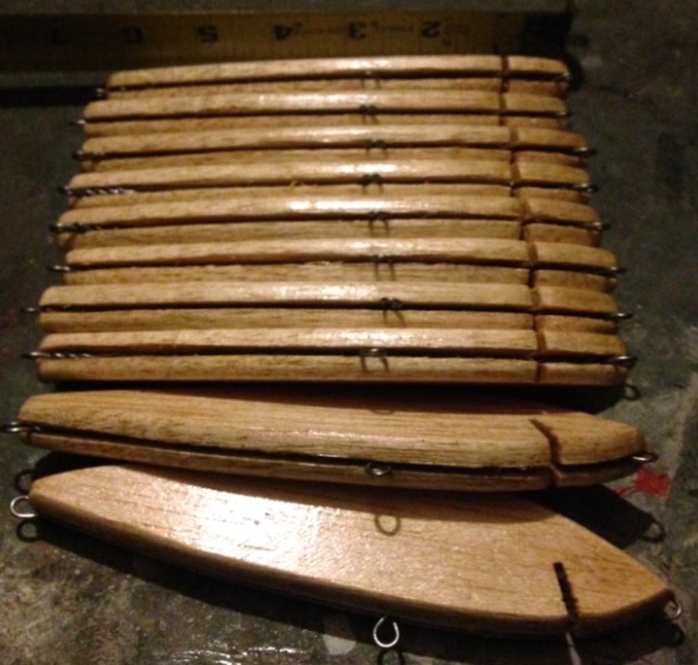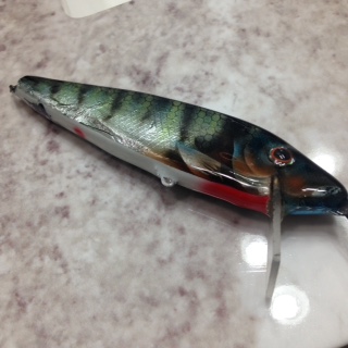 Posts: 126 Location: Culloden, WV | No these aren't blanks I buy 3x3 X 12" balsa and cut with my own pattern, bill, Bill angle, my own wire thru. I made 5 others they are being fished but no catches on them yet. I myself had follow from 40's size on my own but I panicked on the 8 turned tighter than fish coyld turn sooooo.... | ||