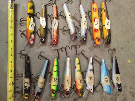 Pic 1: Column 1- Wiley's ($20 ea), Column 2- Krushers ($10ea), Muskie Trains ($20ea), Stalkers ($5ea)