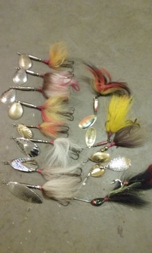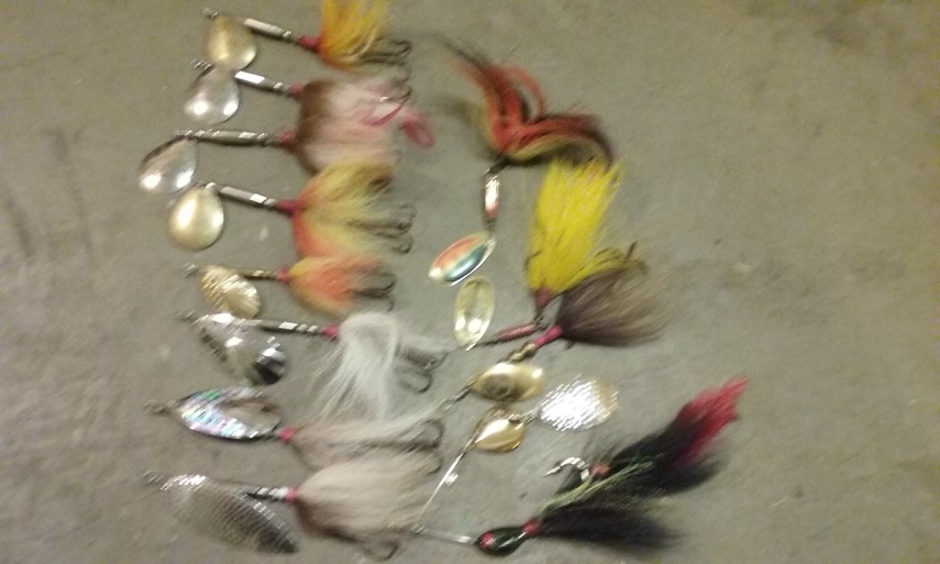 buchertails, muskyrollers, 1 huntertail, couple Mepps, and one spinnerbait.