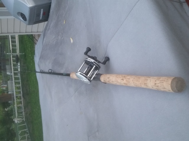 Rod and reel in good shape, reel has boat rash