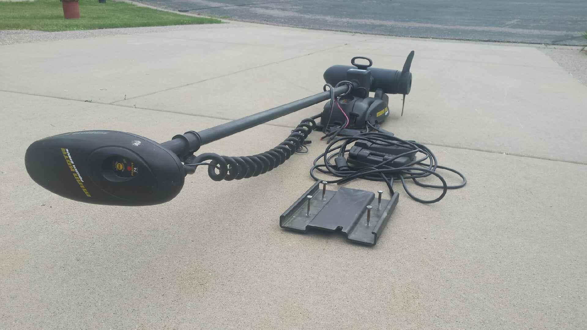 First is a MinnKota Power Drive bow mount trolling motor with co pilot, 74 lbs thrust, 60in shaft. Foot petal is hit or miss, I only used the co pilot remote. Mounting bracket included In good condition. Selling because I upgraded to an XI5. $350