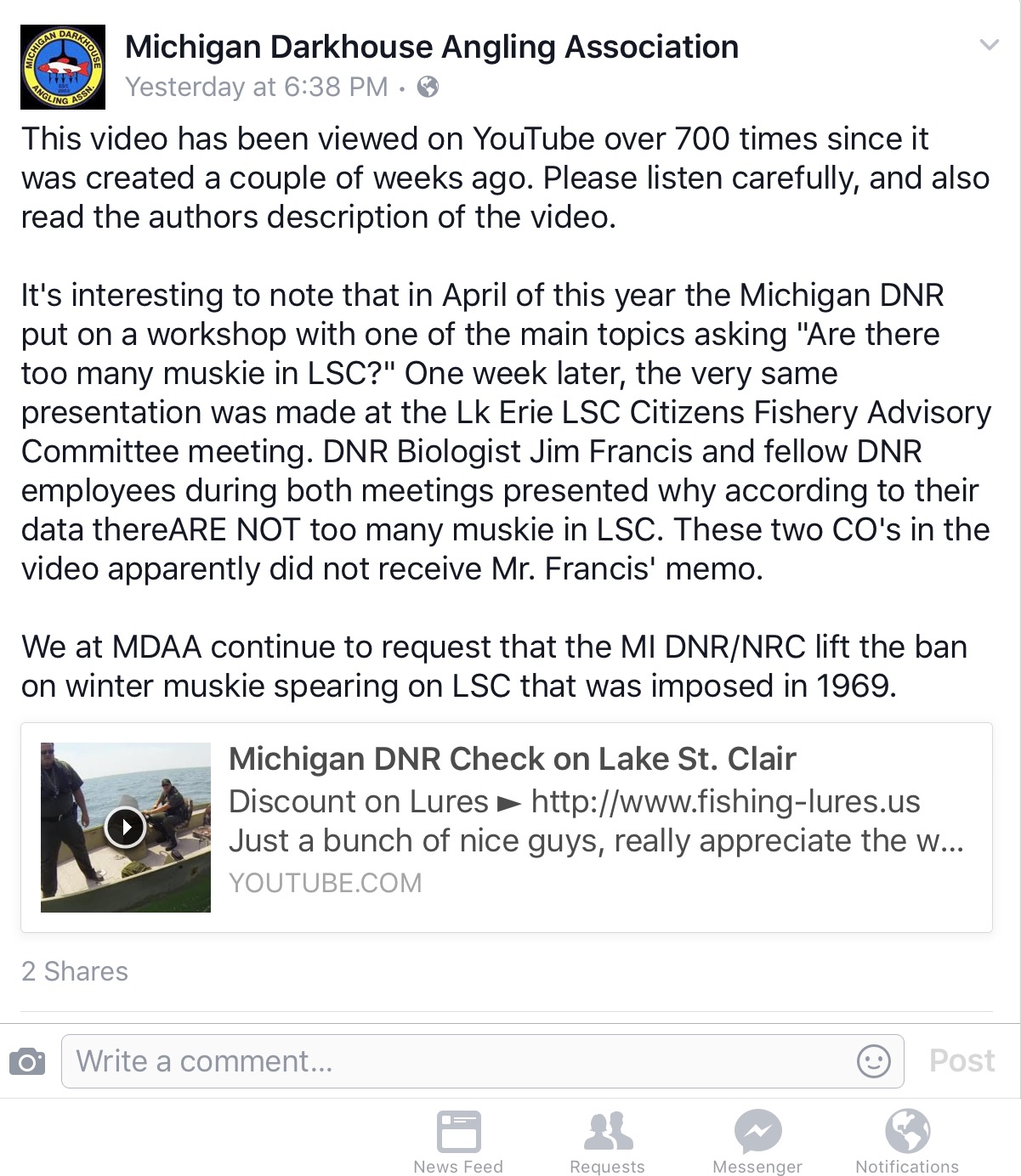 Posts: 285 Location: NE Wisconsin | After seeing the below on Facebook, I see whose mouth is watering. Sounds like they want to winter spear muskies on LSC again! Edited by Johnnie 6/15/2016 4:27 PM Attachments ---------------- image.jpeg (370KB - 713 downloads) | ||