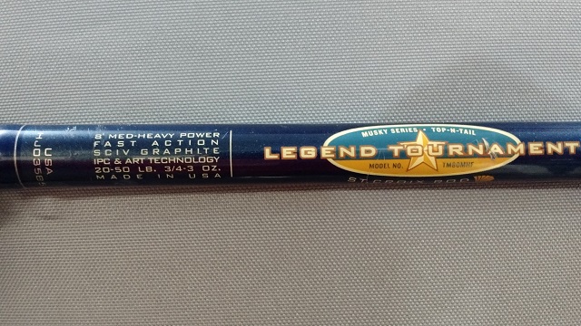 1) Legend Tournament: 8', medium-heavy power, fast action, solid grip. In good condition, always sleeved during transport, handle, eyes, and seat in good condition. $230
