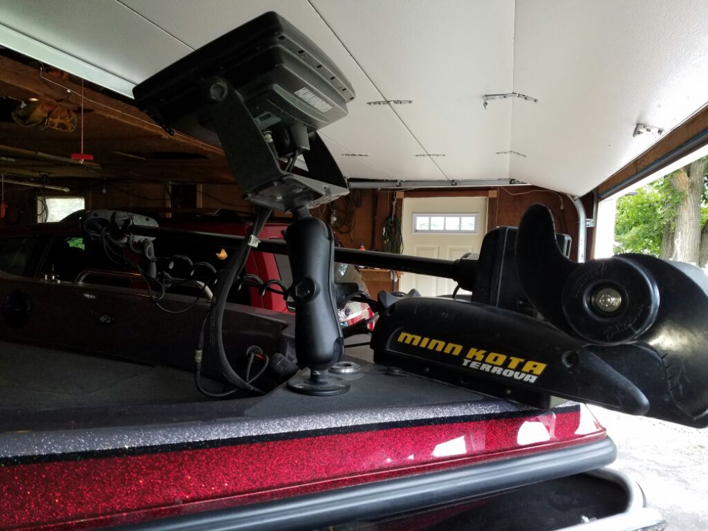 Posts: 271 Location: davis,IL | I had mine mounted the same way as the above pictures. But while underway it was like having a billboard on the bow. So I moved the ball mount about a foot forward so I can lay the mount and unit almost flat. Its big enough that looking at the screen is no problem, but now its sits low enough that it does not block my view while driving the boat. | ||