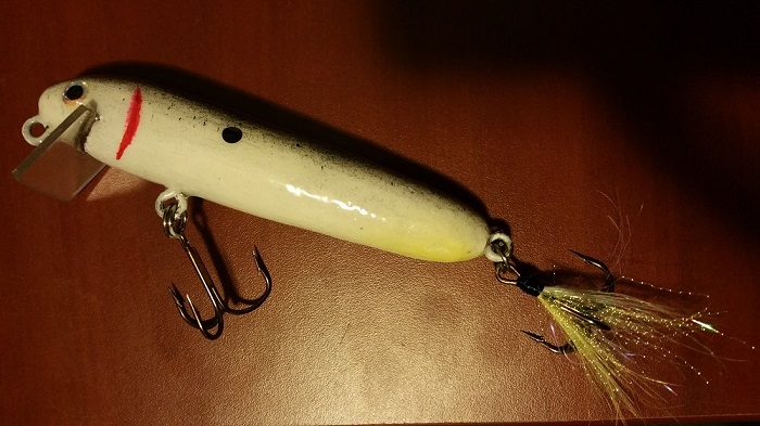 Posts: 44 | The topwater kicks up quite a fuss for a small bait. It is made from a large buzzbait blade that I cut in half and epoxied into deep slots in the wood. I have video but don't know how to post it. The file size is huge so that is problematic. | ||