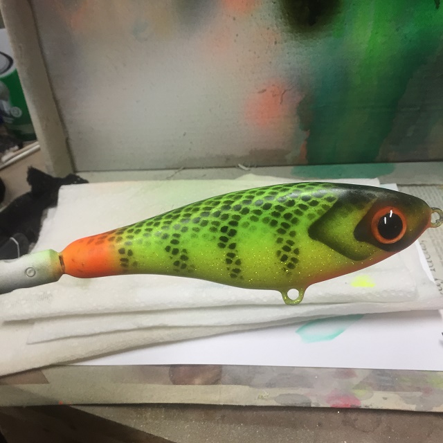 this bait is in between epoxey coats with gitter on it