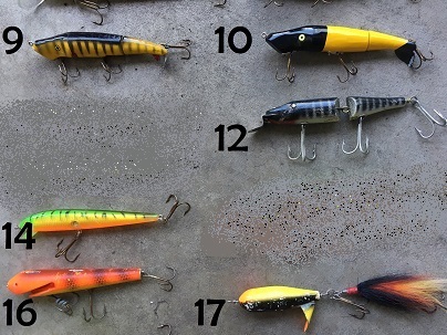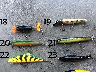 These are all baits acquired from the late Jim Shannon, a long time Muskies Inc. member and served on the board for many years. He passed away last Fall and we are working on getting baits sold and all process go directly back to the chapter.