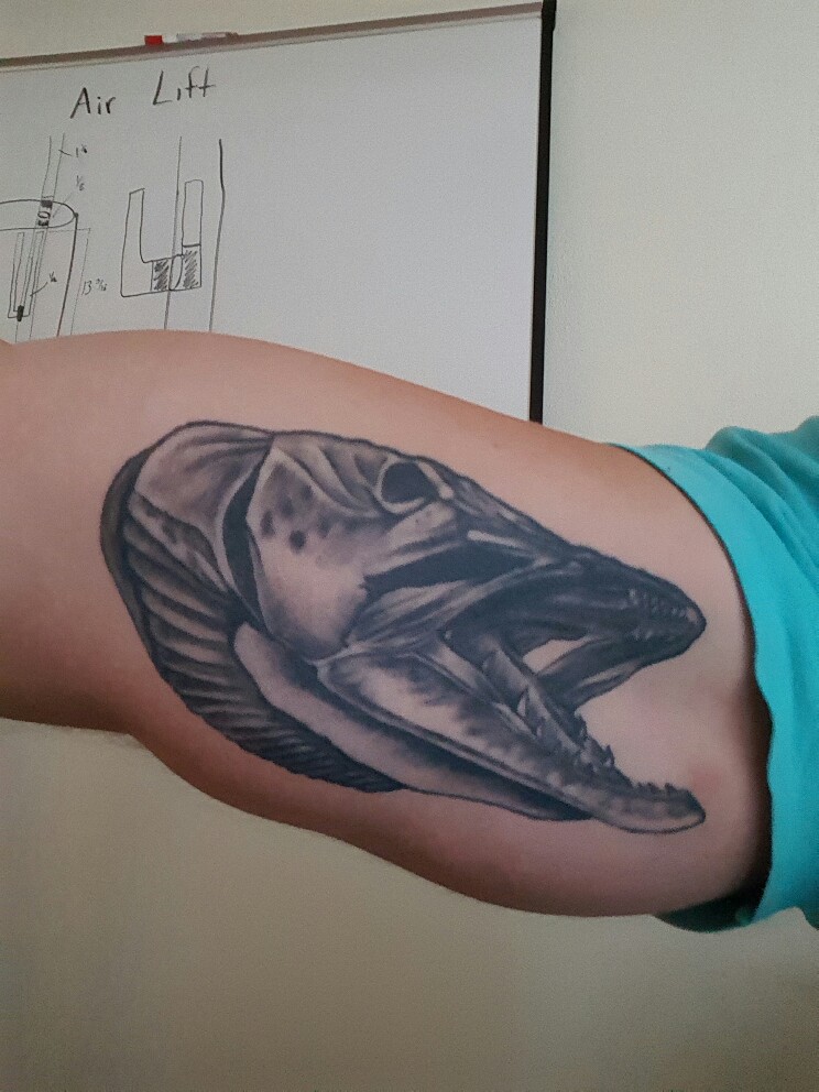 Posts: 1425 Location: St. Lawrence River | No not the organization, I'm talking tattoos. Anyone have a musky related tattoo? Or fishing in general? I see tons and tons of hunting tats, horns...browning logo... and so on. How bout a sweet musky tat? Any good artists out there draw me up a sweet musky theme and I will get it done. Something different! | ||