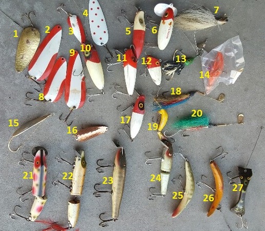 Posts: 1638 Location: Minnesota | You have a few old ones . If you number them it will be easer to identify them. But you have generic Daredevils Johnson silver minnow I see a pikey minnow a flat fish but like i said put numbers by them it will make it easier | ||