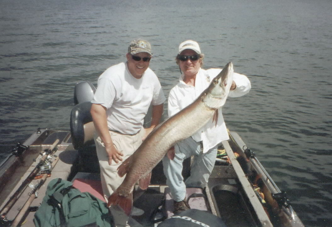 Posts: 167 Location: Girard Pa. | While fishing Eagle Lake with Herbie and my wife Lois,Lois hooked up with a monster fish.Started fishing a spine that ran off into 40' of water,in about a 2 to 3' chop, she was casting the canadian side of the stucture with a Dog.About 8' from the boat hebie and I hear" OH MY G**D!!!!!"Its a big one!!!Fish ate the dog( And the fire drill began)all we could see was about 2" of an 18" leader sticking out of its mouth...Lois did everything right after several runs the fish came up on the Lee side of the boat ,and was pinned against the boat,(Lois is yelling at me to get the Camera,.and.someting about womens intuition)....and we couldn't get a clean shot with the net ,Lois tried to manuver the fish for Herbie ,It did one of those Half #@$@@ jumps and the bait came out and hit Lois in the chest....Fish was 55 to 56" long herbie figured it to be in the low 50# range.Herbie did hook up the next day with a 56" fish with another guy from our group (Eian Rintamakie) 56 X22 low 40's fish... Great trip,Lois is calling 48"s dinks now,The only good thing about her losing the fish is I won't have to tell everybody that the replica on the wall is my wife'sLOLOLOL will post a pic of Eian's fish shortly ARTIE Funny how you remember every detail of the one's that get away and not the ones you boat......... Edited by FishMan 7/20/2003 8:40 AM Attachments ---------------- Ian fish.jpg (100KB - 344 downloads) | ||