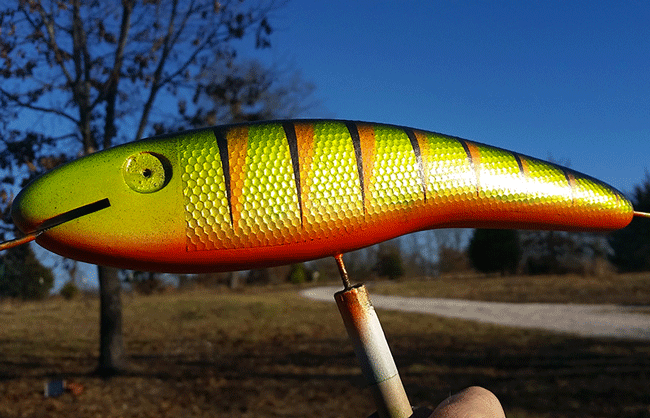 More Muskie Fishing -> Basement Baits and Custom Lure Painting -> Trying my hand at a couple foiled baits