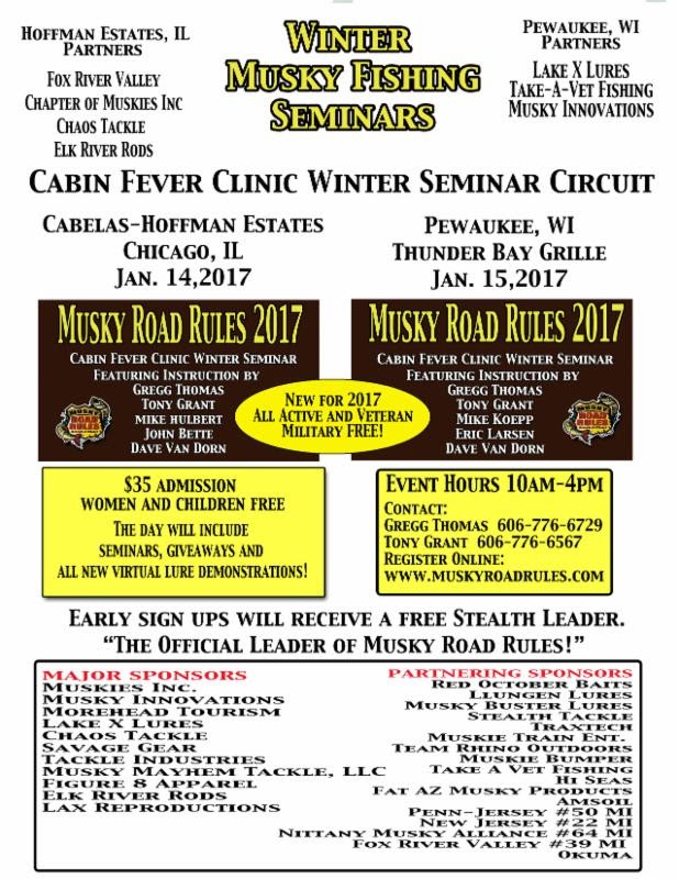 | Jump to page : 1 Now viewing page 1 [30 messages per page] Muskie Fishing -> General Discussion -> January 14 and 15 Musky Road Rules, Chicago and SE Wisconsin! |