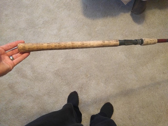 Location: Forest Lake, MN & Bemidji, MN | The cork itself is 15 3/8" long, the handle is 18" to the front of the reel seat overall. The rod was given to me new, as a gift in late 2013. I used it the full seasons. I am not sure exactly when it was made as it was bought off the shelf from Thornes, so it's likely 4 years old or more. I believe it is an avid blank. It's a nice rod, I am just going to everything 9' or more. If you have any other questions or want more pics just pm me. Thanks |