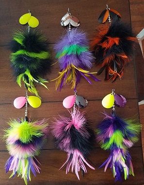 Traded a couple custom marabou ties for some baits from a guy. 2 tails turned into 6... Haha I'm glad he was patient. I just do this for a hobby and only charge a few extra over cost of materials. But, I was very peased with the results and thought I would share.