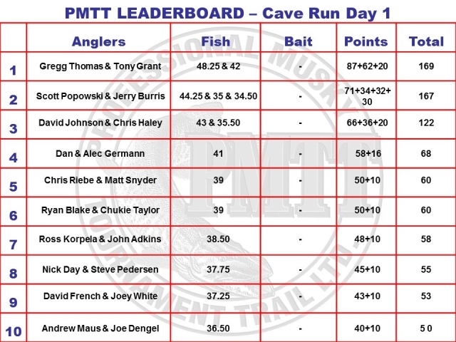 | Message Subject: Tony Grant & Gregg Thomas Lead on Day 1 - PMTT Cave Run Lake | |||