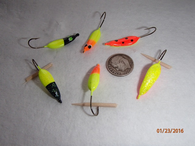 Posts: 47 | Here's a few jigs I painted ice and open water: Edited by otto 5/23/2017 7:30 PM Attachments ---------------- Mini Hawgers.JPG (83KB - 552 downloads) 3 Eighths oz Colors.JPG (61KB - 512 downloads) | ||
