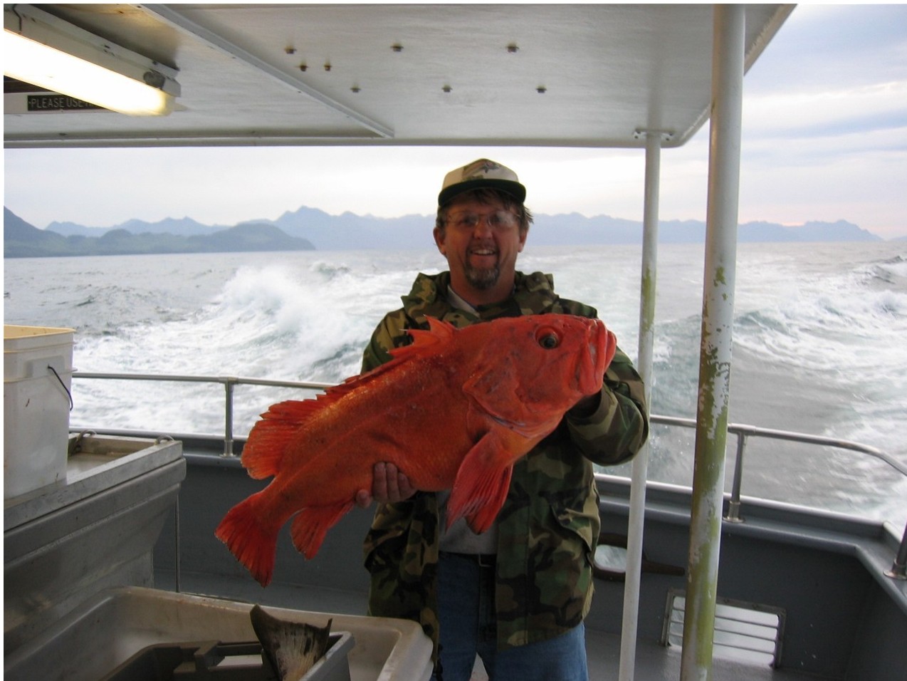 Posts: 4266 | It's a Rockfish. An Alaskan Yelloweye Rockfish?.....and I'd rather fish for halibut than salmon.... Looks like a member of the grouper family and I bet It's delicious. Beav Edited by Beaver 8/17/2003 6:43 AM | ||