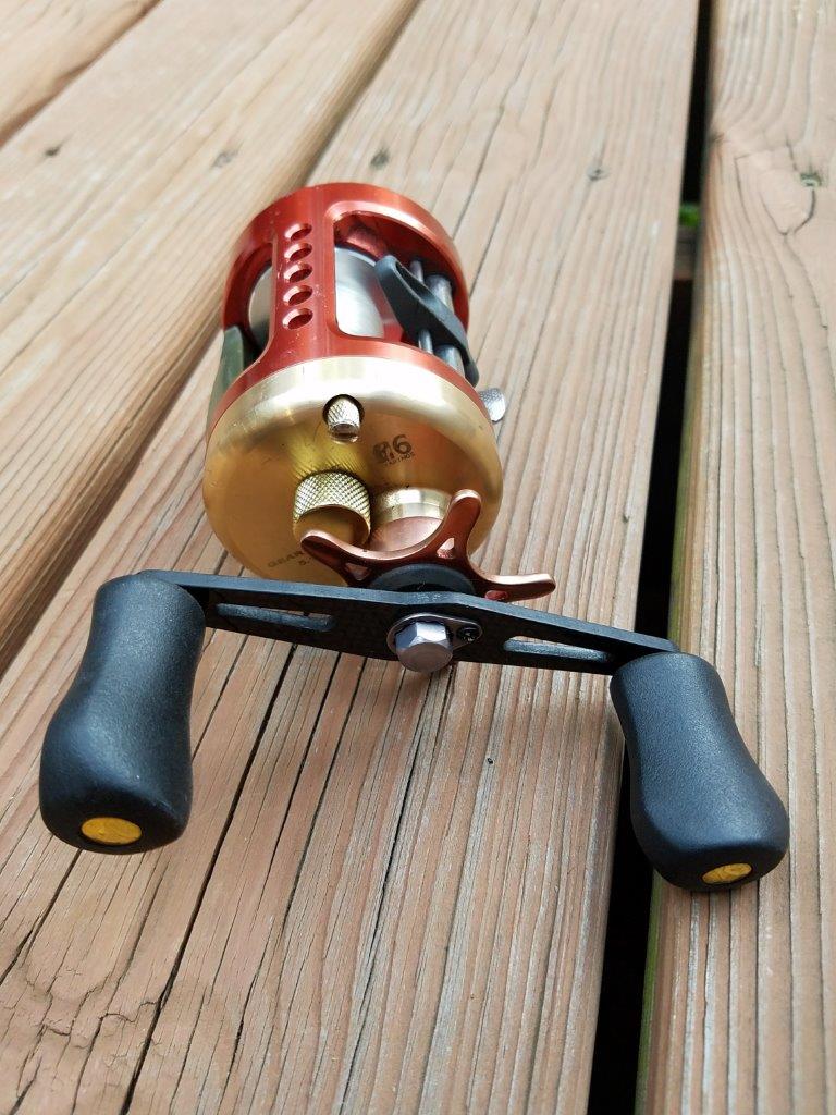 1 Okuma Isis 400 with power handle and 1 Red Isis with double paddle handle. Both were in the main rotation for a while but been backup reels the last several years.