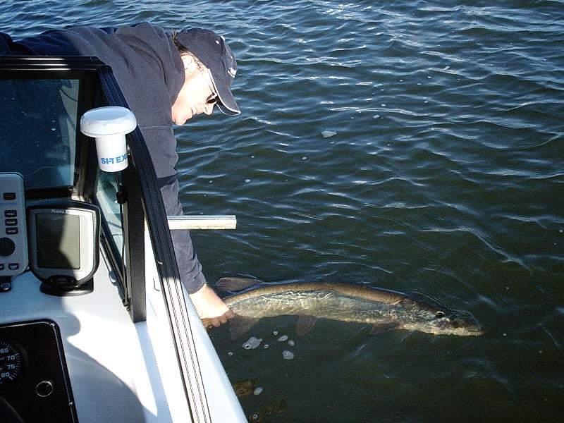 Wow, what a week! What a great place to stay! What a great group we had out there! Everything went great, 'cept for the fish I was working. I came up there to beat my personal best of 47", and came close several times. I had some really nice fish going, and had my chances, but it was not my week. I blanked!
