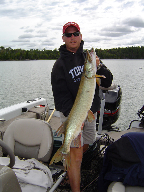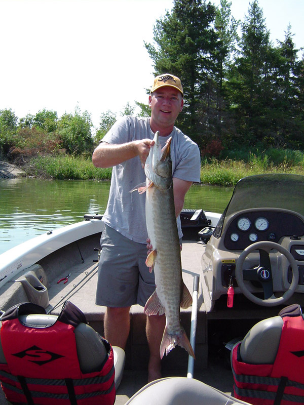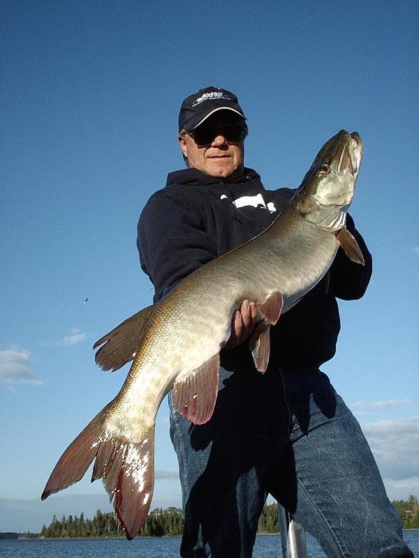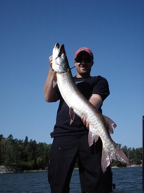 I only boated 4 myself but did get my personal best of 43" (on a topwater and figure 8). The other 3 were mid 30's. Fished with DaveJ the entire week and had one day my stomach hurt from laughing so hard. Couldn't ask for a better boat partner. The accomodations were great as were the other people in our cabin. Steve, Keith and friend and Mr. Bluegill along with those in the attached cabin Jason/Connie, Shep/Beth and Eric. Had a great time with good friends and everyone came home safe.