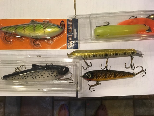 Muskie Fishing -> Buy , Sell, and Trade -> 5 Jerkbaits, new and nearly new Suick, Rippin Dawgs Royal Orba