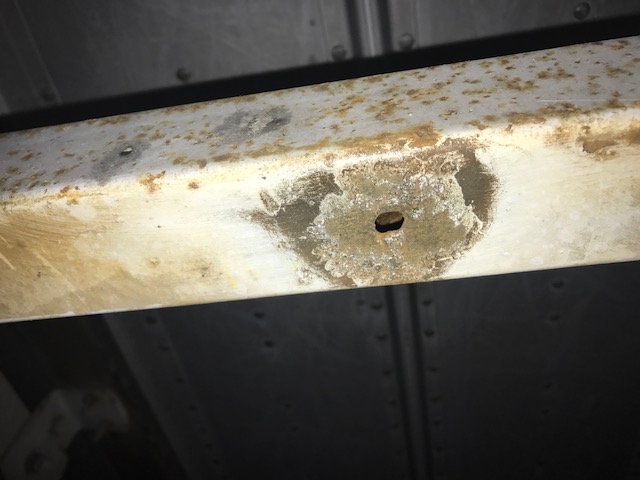 When doing a look see at the suspension/axle of my trailer, I noticed a rusty spot on the bottom side of the square axle. When I took a closer look, I noticed a hole as well. I scraped off the rust with a wire brush. I guess it's possible the hole is a drain hole intentionally drilled there. But I'm not certain...to be honest I've never looked at the bottom side of the axle before.