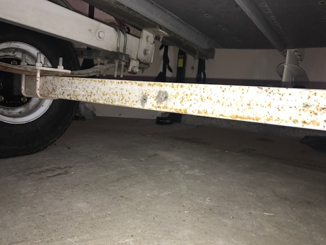 All in all the axle seems sturdy...mostly surface rust. Does this spot look like it would compromise the integrity of the axle, or is it something that I can wait on to replace? Trailer was made circa 1991 and it has original the axle and leaf springs.