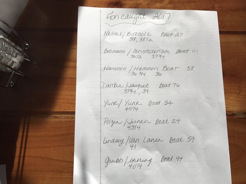 Posts: 32959 Location: Rhinelander, Wisconsin | There's at least four doubles and another fish was just reported. Looks like we are on near record pace for numbers this year. At this time there's 24 registered, and fishing is over for the day. 111 teams fished today today, and most are almost or are off the water. The payout this year will be better not just because of the larger field, but also because of Gerrits hard work acquiring sponsors. Attachments ---------------- DSC_3255.jpg (67KB - 537 downloads) | ||