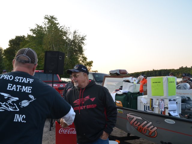 Posts: 32944 Location: Rhinelander, Wisconsin | A full field of teams left the dock this morning at 7 am under clear skies, frosty temps, and light winds for the KWM out of Gerrits Lakeview on Pelican Lake, WI. 5 Muskie have been registered from 36.5 to 41 in a flurry of activity as the tournament got underway this morning. Nick Alden busted a 38.25 on his first cast this morning. The bite is on so far! Watch for a report from the water as soon as the fog clears. The KWM runs 7 Am to 5 PM, then a dinner for the entire field is served leading up to awards and an absolutely wild raffle benefitting the Ronald McDonald House in Marshfield, WI. 100% of the entry fees are returned to the top placing teams, and all other proceeds are dontated to the Ronald McDonald House. Attachments ---------------- DSC_3243.jpg (33KB - 471 downloads) DSC_3231.jpg (31KB - 518 downloads) DSC_3253.jpg (85KB - 514 downloads) DSC_3269.jpg (51KB - 522 downloads) DSC_3278.jpg (75KB - 464 downloads) DSC_3274.jpg (59KB - 483 downloads) DSC_3263.jpg (60KB - 503 downloads) | ||
