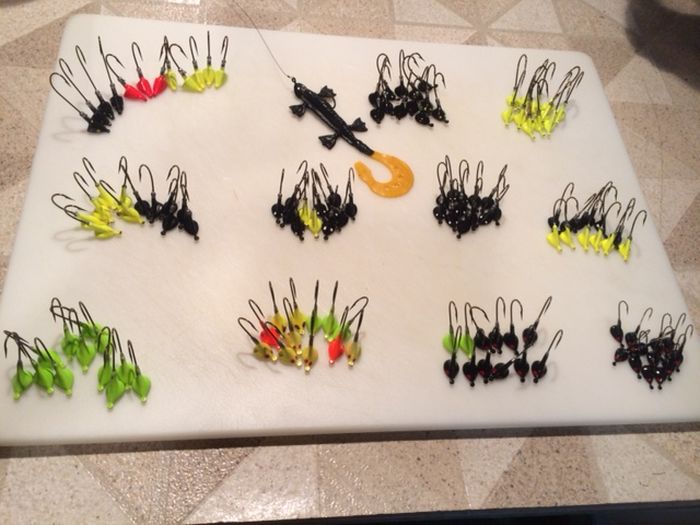 Front row, 3 lots on left, Lindy 3/8 oz. stand up jig- 5/0 round bend VMC, $5 a lot