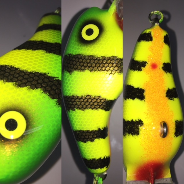 Posts: 120 | Very nice, wow! You selling them somewhere? Also, just a quick question regarding painting, I've seen it from a couple other lure makers. how do you get that "torn" looking affect, like in your perch stripes? I'm not sure what to call it exactly. I have made my own stencil, but with solid edges. I don't know how you get that look, but it looks amazing! nice work. | |||